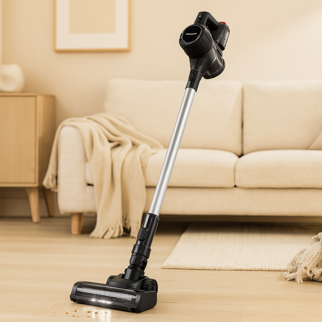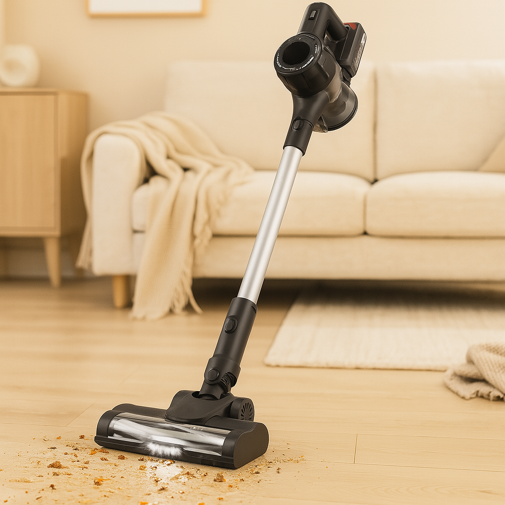 Erleben Sie müheloses Reinigen mit diesem kabellosen Staubsauger. Das leichte Design erleichtert das Tragen, während die starke Saugkraft Staub, Schmutz und Tierhaare entfernt.