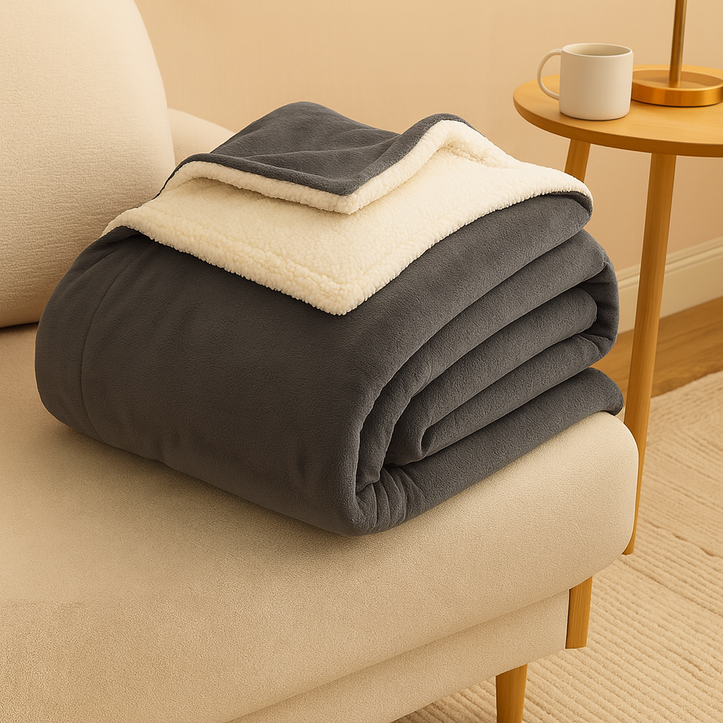 Diese Überwurfdecke verfügt über eine weiche Sherpa-Fleece-Oberfläche, die angenehme Wärme spendet. Ideal für Sofa, Couch oder Bett schafft sie entspannte Momente und eine einladende Atmosphäre im Zuhause.