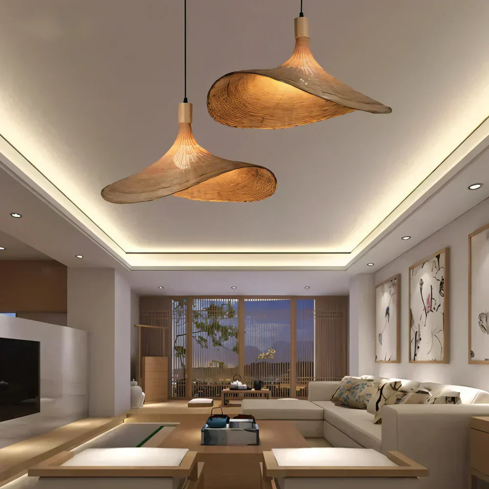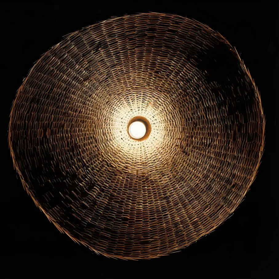 Die BambWicker Pendelleuchte präsentiert ein sorgfältig handgefertigtes, geflochtenes Design, das Ihren Raum mit einem Hauch natürlicher Eleganz bereichert. Ihr filigranes Geflecht erzeugt ein schönes Spiel von Licht und Schatten, das die Atmosphäre jedes Raums verbessert.