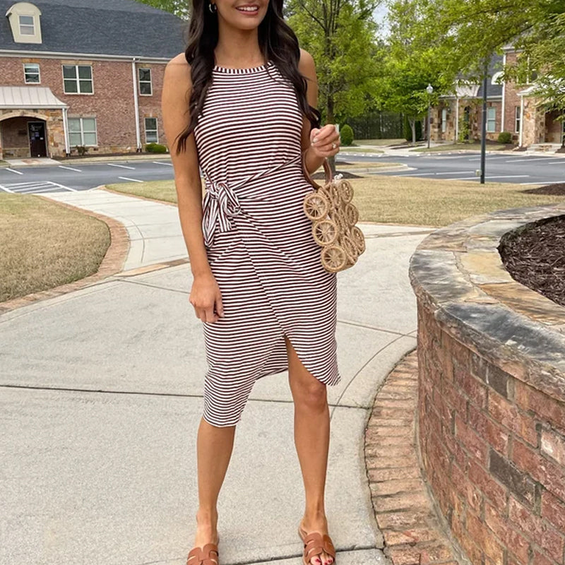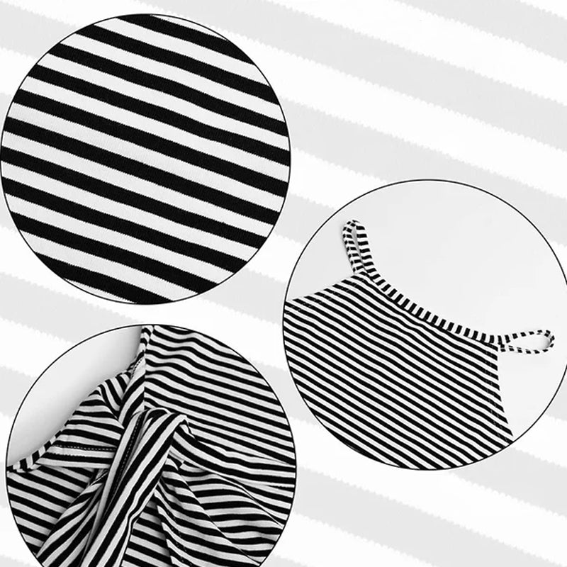 Entwickelt, um Ihre natürliche Schönheit zu betonen, bietet Bella - Gestreiftes Spaghettikleid eine bequeme Passform mit einem eleganten Spaghettiausschnitt. Der leichte Stoff hält Sie kühl und stilvoll und ermöglicht einen mühelosen Übergang von täglichen Abenteuern zu Abendveranstaltungen.