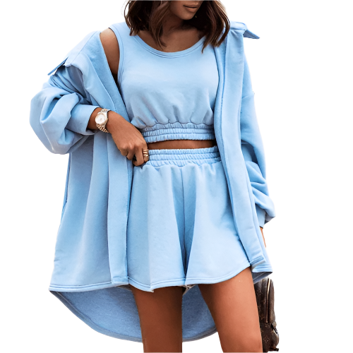 Bianca - Lässiges Alltagsset in 3 Teilen kombiniert Komfort und Vielseitigkeit in einem einzelnen, stilvollen Set. Es beinhaltet ein elegantes Top, lässige Hosen und eine moderne Weste – die perfekte Wahl zum Entspannen, für alltägliche Aufgaben oder informelle Zusammenkünfte. Egal, ob Sie zu Hause oder unterwegs sind, sehen Sie immer gut gekleidet aus, mit minimalem Aufwand.