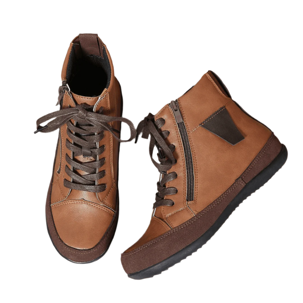 Die Brielle Damenschuhe mit Schnürsenkeln verbinden klassisches Design mit moderner Funktionalität. Mit einer Silhouette bis zur Mitte der Waden sind diese Stiefel auf Stil und Komfort ausgelegt. Die Kombination aus Schnürsenkeln vorne und einem Reißverschluss an der Seite sorgt für eine sichere Passform und einfache Handhabung, was sie zu einer vielseitigen Ergänzung Ihrer Garderobe macht.