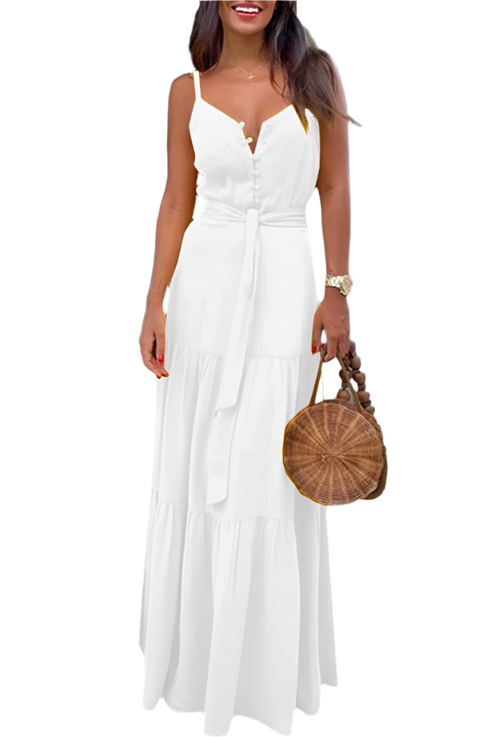 Caroline - Trendiges einfaches V-Ausschnitt Trägerkleid bringt ein frisches Gefühl von Eleganz in deine Garderobe. Mit ihrem schlichten V-Ausschnitt und fließenden Silhouette ist dieses Kleid perfekt für sonnige Tage, entspannte Treffen oder spontane Ausflüge. Leicht und stilvoll betont es deine natürliche Schönheit mit minimalem Aufwand.