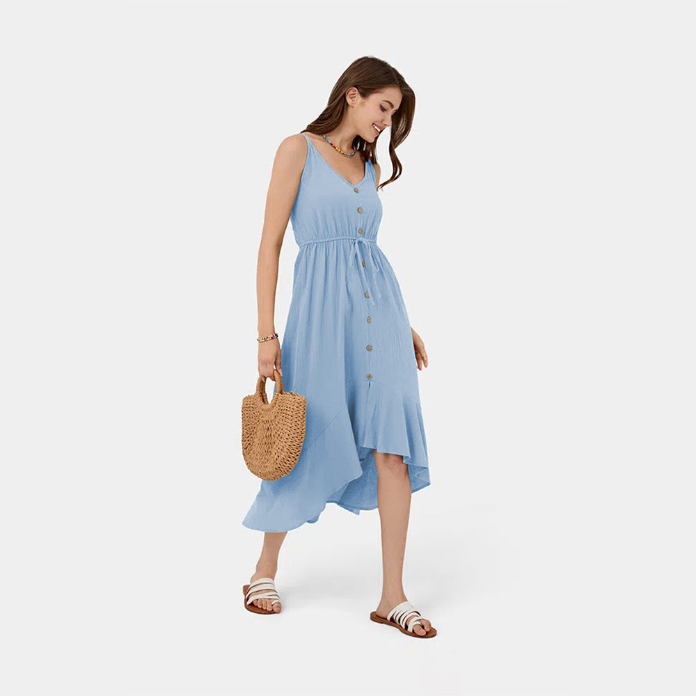 Gestaltet mit Komfort und Charme im Hinterkopf, hat dieses lange Kleid verstellbare Träger, ein atmungsaktives Material und eine schöne Textur, die Dimension verleiht. Der mitgelieferte Taillengürtel ermöglicht es Ihnen, Ihre Form zu betonen oder es lässig zu halten, je nach Ihrer Stimmung. Kombinieren Sie es mit Sandalen für einen entspannten Look oder stylen Sie es mit Absätzen und Accessoires für einen raffinierten Stil.