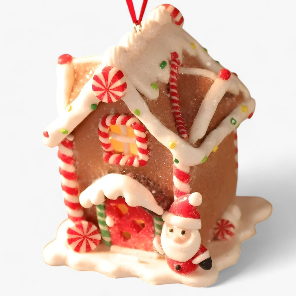 Fügen Sie Ihrer Einrichtung eine Prise Weihnachtszauber mit dem GingerGlo hängenden Weihnachts- Lebkuchenhaus hinzu. Entworfen mit ausgeklügelten Schneemann-, Weihnachtsmann- und Süßigkeiten-Details. Sein verspieltes Design weckt die Freude der Saison.