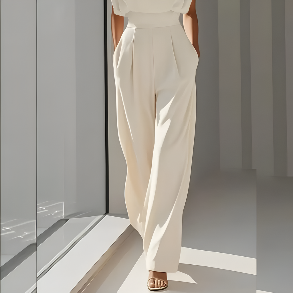 Ein stilvoller und bequemer Einteiler mit weiter Beinform, ideal für den täglichen Weg ins Büro oder entspannte Wochenendausflüge. Das zeitlose Design und der luftige Schnitt sorgen für ein angenehmes Tragegefühl bei jeder Gelegenheit.
