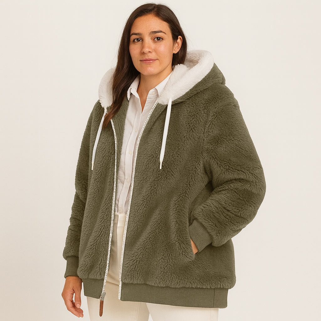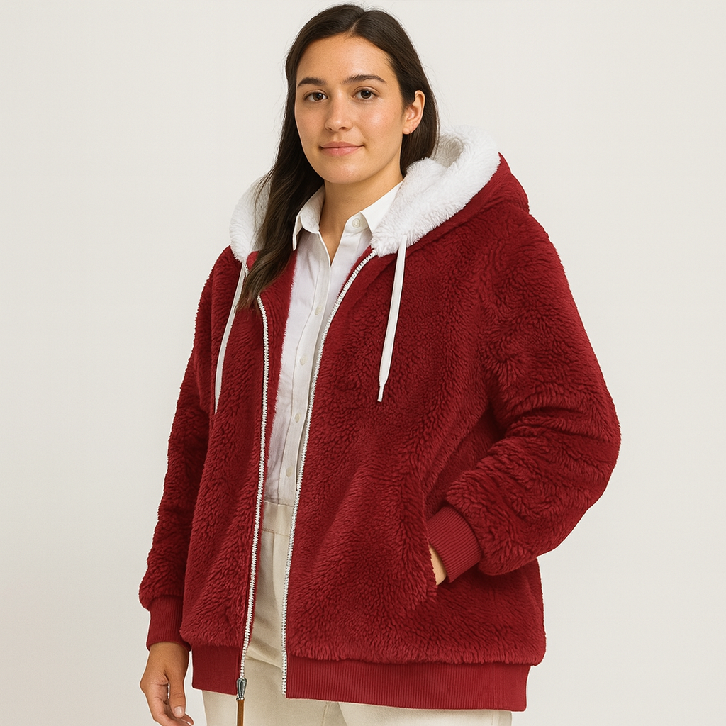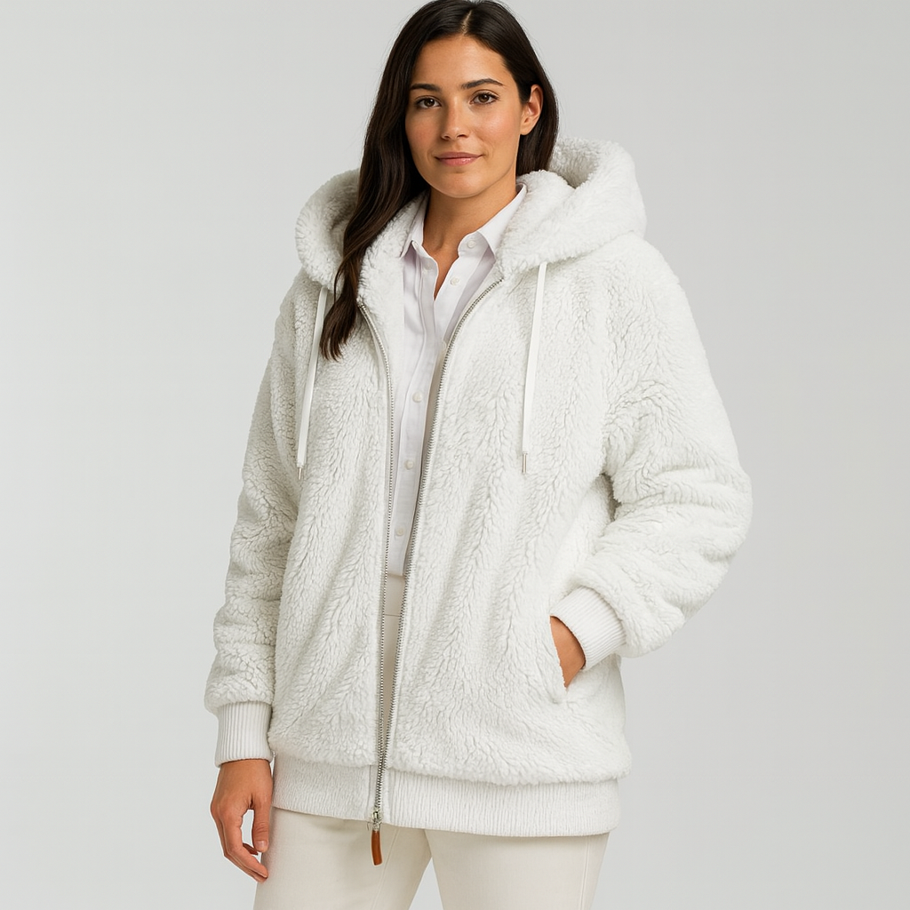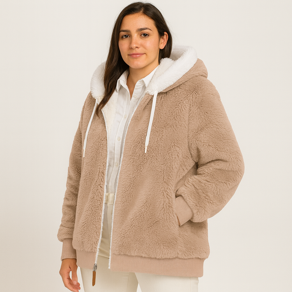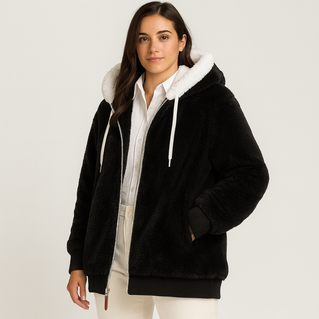 Mit einfachem Reißverschluss und Kapuze gestaltet, ist dieser Mantel vielseitig kombinierbar. Seine weiche Plüschstruktur und das lässige Design machen ihn ideal für tägliche Outfits in der kalten Jahreszeit.