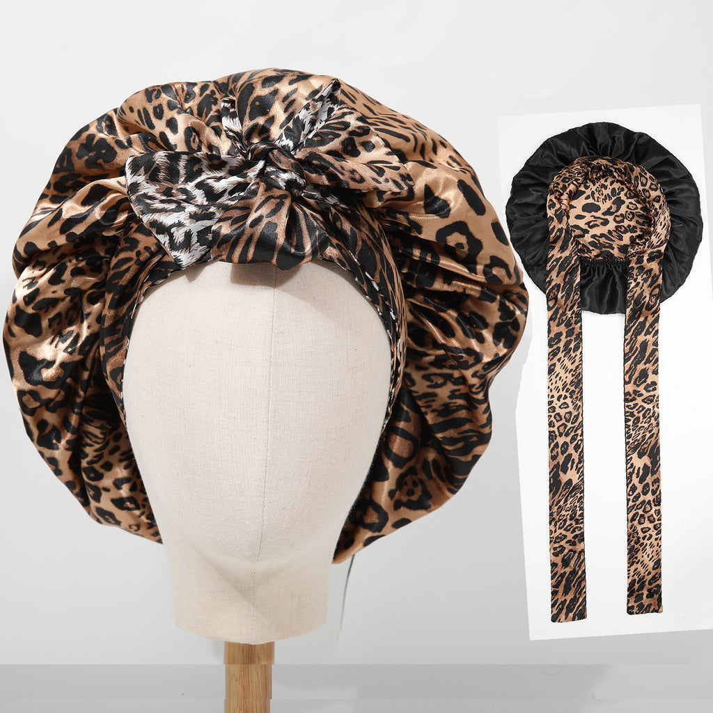 Die leopardmusterte Seide Schlafmütze ist so konzipiert, dass sie die natürliche Feuchtigkeit deines Haares bewahrt und die Reibung während des Schlafs reduziert. Der weiche und glatte Stoff minimiert Frizz und brüchiges Haar, was sie ideal für trockenes, lockiges oder strukturiertes Haar macht.