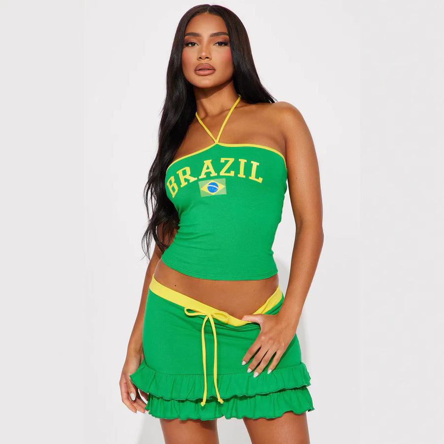 Fang die Energie des Sommers mit Marina - Rio Rüschentop- und Unterrock-Duo. Dieses farbenfrohe Zweiteiler-Set ist inspiriert von der lebhaften Atmosphäre Brasiliens und verleiht deiner Garderobe einen festlichen und femininen Touch. Das kurze Top und der passende Rock sind mit verspielten Rüschen verziert, die in jedem Schritt Bewegung und Eleganz erzeugen.
