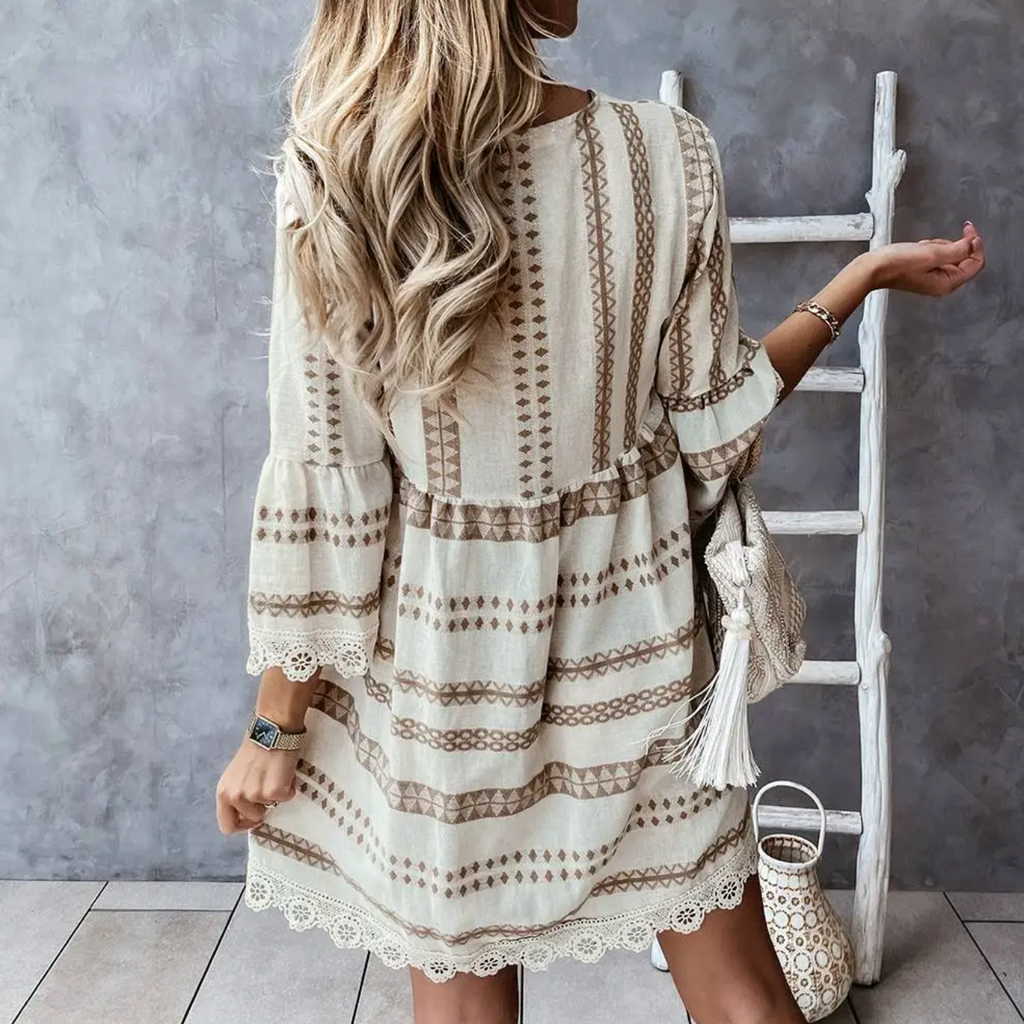 Treten Sie ein in eine Saison voller Komfort und Stil mit Maxine - einem luftigen und lockeren Sommerkleid. Dieses leichte Kleid ist darauf ausgelegt, Ihnen Bewegungsfreiheit zu geben, während Sie gleichzeitig unaufdringlich stilvoll bleiben. Der leichte Stoff und die entspannte Passform machen es perfekt für warme Sommertage, an denen Sie kühl und modisch bleiben möchten.