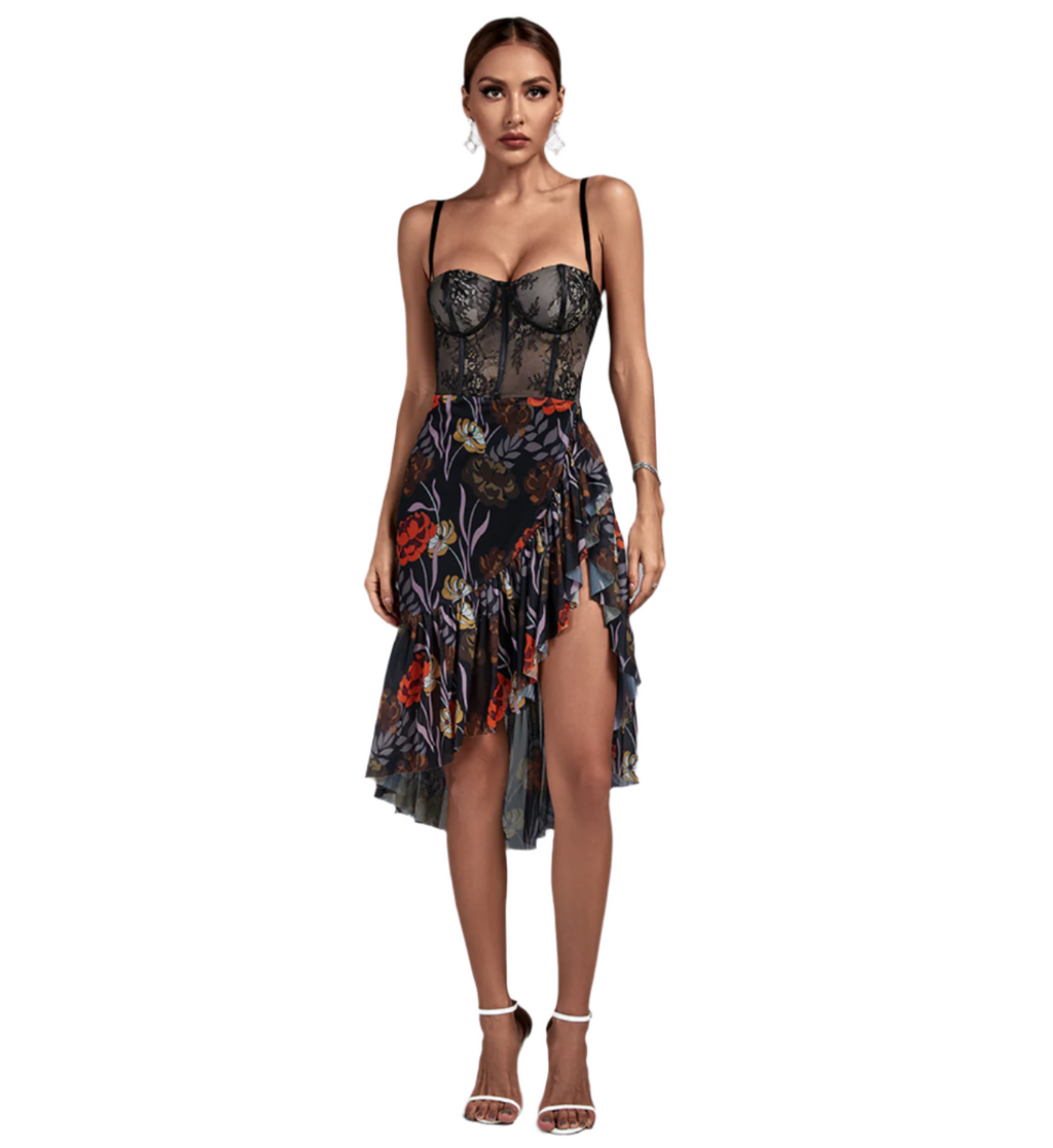 Trete ins Rampenlicht mit Misha - Blütenprint Herz-Ausschnitt Cocktailkleid im Korsettstil. Dieses Kleid ist mit einem schmeichelhaften Herz-Ausschnitt und einem strukturierten, korsett-inspirierten Oberteil gestaltet, das zeitlose Romantik ausstrahlt. Der feine Blumenprint fügt einen Hauch von verspielter Eleganz hinzu, perfekt für jeden besonderen Anlass, bei dem du einen bleibenden Eindruck hinterlassen möchtest.