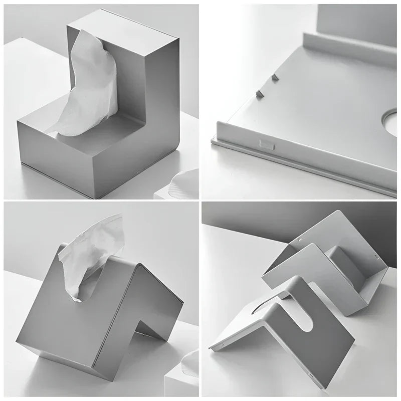 Dieser moderne, L-förmige Taschentuch-Organizer wurde entwickelt, um eine praktische und elegante Lösung zur Aufbewahrung Ihrer Taschentücher zu bieten. Die platzsparende L-Form ermöglicht es Ihnen, die verfügbare Fläche optimal zu nutzen, während die Taschentücher stets griffbereit sind und das ästhetische Erscheinungsbild Ihres Raumes verbessern.