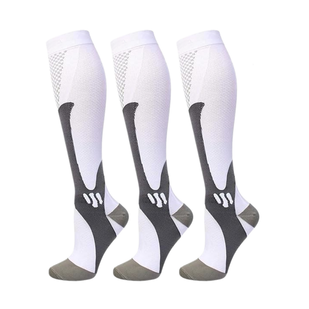 Diese Kompressionssocken bestehen aus einem hochwertigen, feuchtigkeitsableitenden Material, das Ihre Beine kühl, trocken und bequem hält. Die nahtlose, eng anliegende Passform bietet gezielte Unterstützung, ohne die Bewegung einzuschränken, was sie ideal für Arbeit, Sport oder Entspannung macht.
