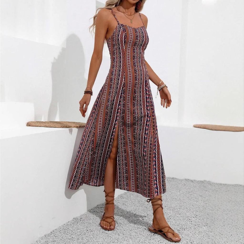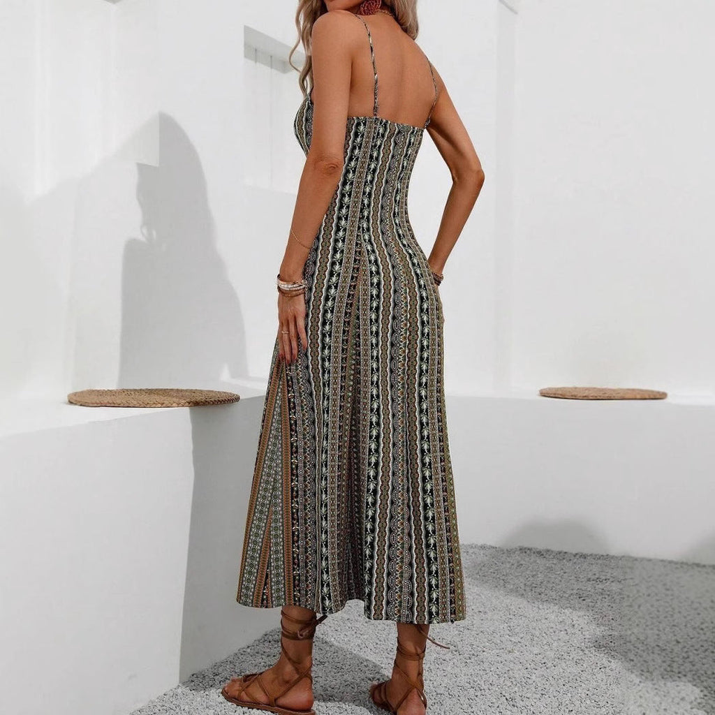 Rennee - Das gestreifte Strapback-Kleid bringt einen frischen, modernen Twist in deine Garderobe mit seinem schlanken Streifenmuster und dem schmeichelhaften Strapback-Design. Perfekt für sonnige Tage kombiniert dieses Kleid Stil und Komfort in einem leicht tragbaren Stück.