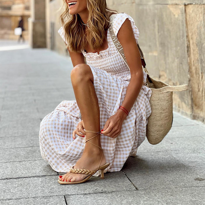 Sheila - Lange Smockkleid kombiniert zeitlosen Stil mit mühelosem Komfort. Ihre fließende Silhouette und die intricaten Smockdetails machen sie zur perfekten Ergänzung Ihrer Garderobe, sowohl für alltägliche Ausflüge als auch für besondere Anlässe.