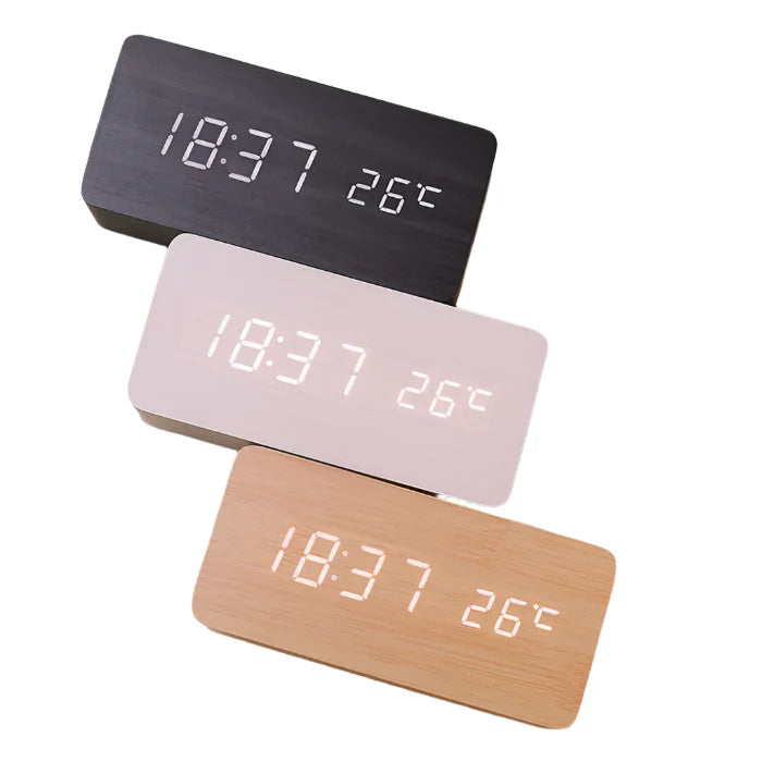 Wachen Sie stilvoll auf mit dem sprachgesteuerten SmartGlow LED-Wecker aus Holz. Mit einem klaren, modernen Holzfinish und einem hellen LED-Display kombiniert dieser minimalistische Wecker ästhetische Eleganz mit praktischer Technologie. Das sprachaktivierte Display leuchtet auf durch ein einfaches Geräusch oder einen Druck, was Bequemlichkeit ohne Kompromisse bei dem Design bietet.