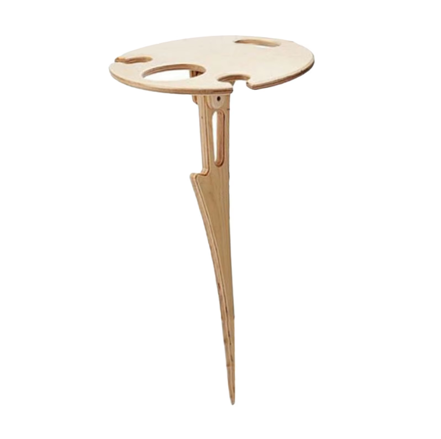 Terraliv ist einfach zusammenklappbar und überallhin mitzunehmen – vom Park bis in den Garten. Mit Erdspitzen am Boden steht er stabil auf Gras, Sand oder Erde. Die robuste Konstruktion und die smarten Aussparungen für Gläser und Flaschen machen ihn ideal für Weinliebhaber, Camper und Festivalbesucher.