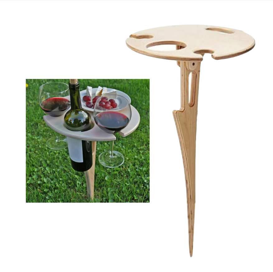 Portabler Tisch für den Außenbereich mit Platz für 1 Flasche und 2 Gläser