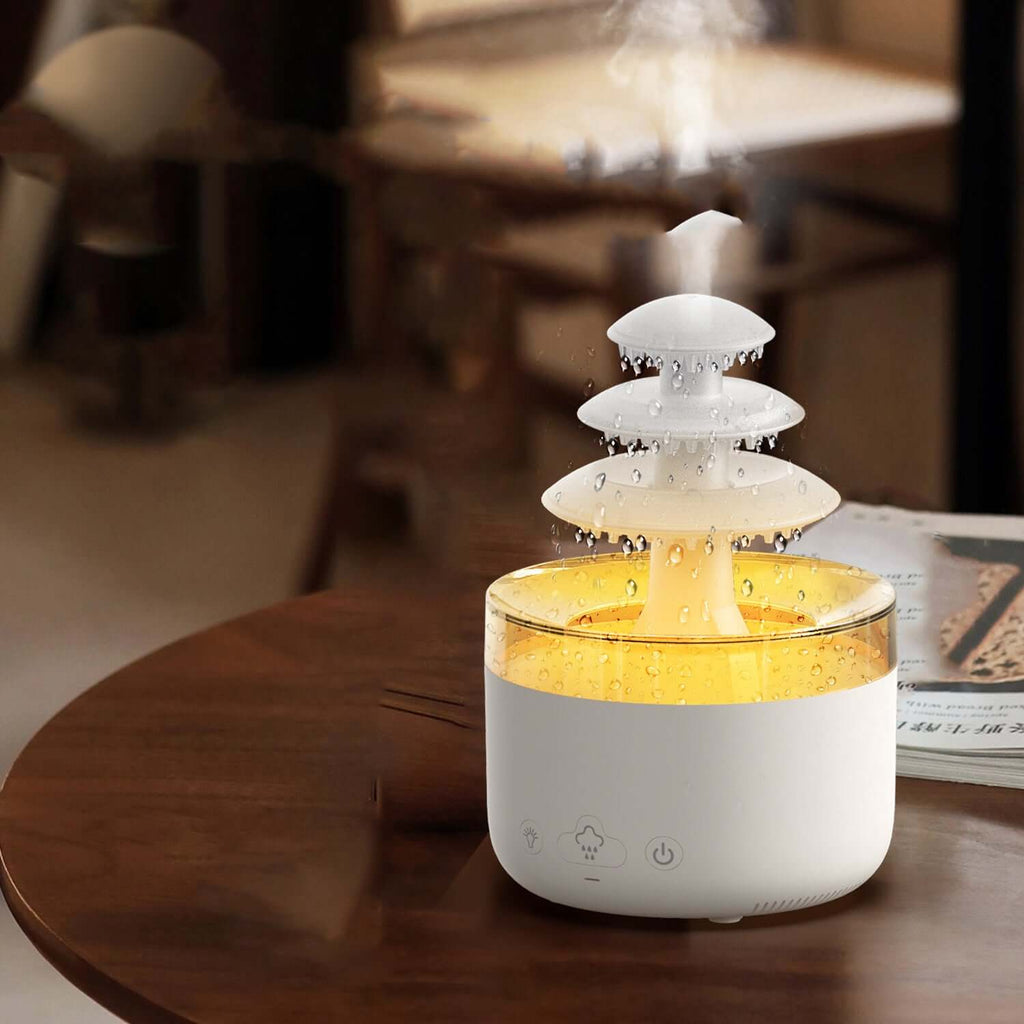 TranquilMist kombiniert ein stilvolles, mehrschichtiges Design mit fortschrittlicher Ultraschalltechnologie für eine effektive und geräuschlose Vernebelung. Perfekt für Schlafzimmer, Wohnzimmer oder Büro, wo es die Luftqualität verbessert und einen angenehmen Duft verbreitet.