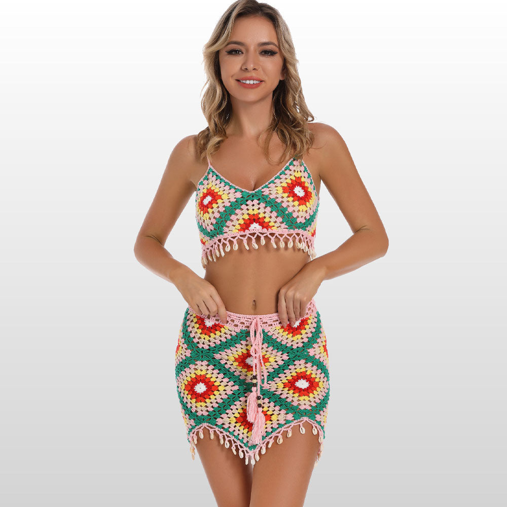 Egal, ob du auf dem Weg zu einer Strandparty bist oder einen sonnigen Spaziergang genießt, dieses gehäkelte Bralette und Rock-Set bietet sowohl Komfort als auch Stil. Das kunstvolle Häkelmuster erhöht den visuellen Ausdruck, während der atmungsaktive Stoff dich kühl hält. Dieses Set kann auf verschiedene Arten gestylt werden, sodass du für jeden Anlass bereit bist, von lässig bis hin zu stilvolleren Veranstaltungen.
